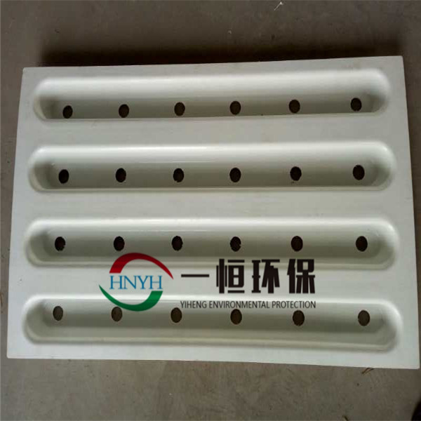 整体浇筑滤板模板采用ABS或玻璃钢制成的楞型板,以确保浇筑时模板的强度,凸台上开有带颈套的圆孔用以固定可调式滤头的预埋座。